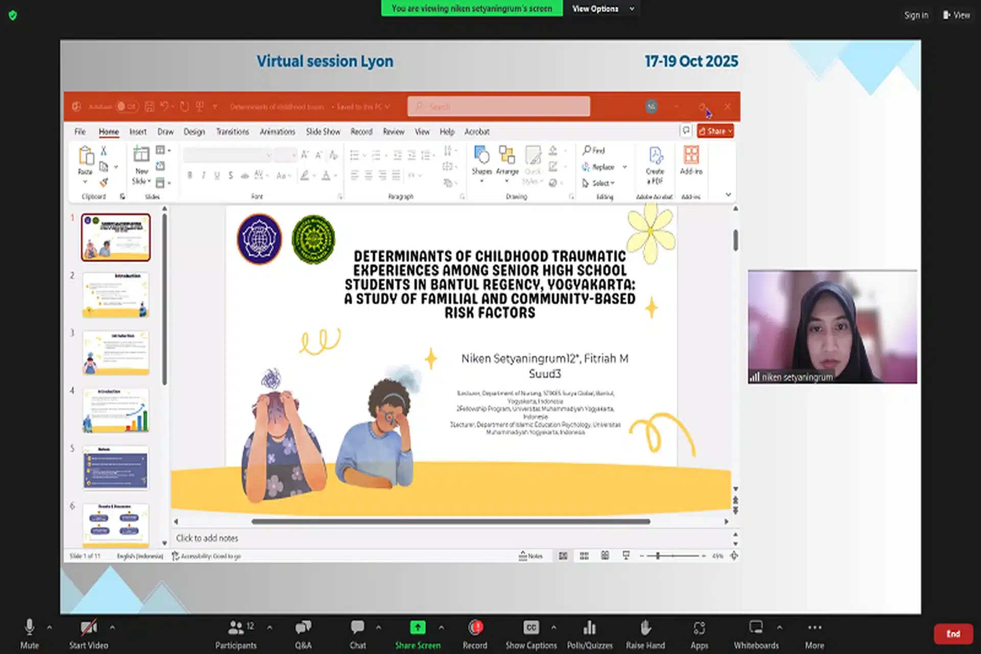 | Mrs. Niken Setyaningrum | STIKES Surya Global Yogyakarta, Indonesia | Determinants of childhood traumatic experiences among Senior High school students in Bantul Regency, Yogyakarta: A study of familial and community based risk factors |