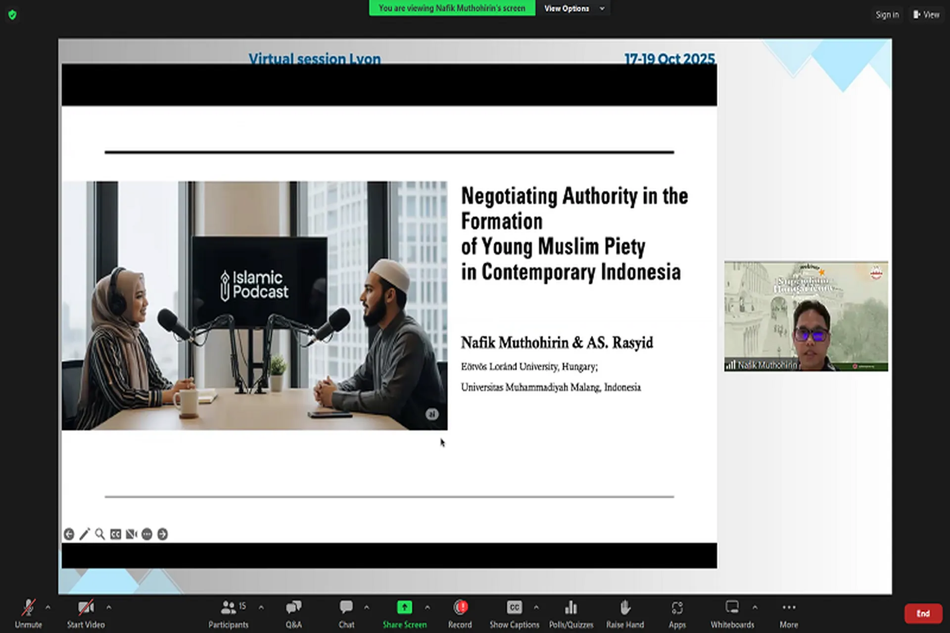 ![]() | Mr. Nafik Muthohirin | Eötvös Loránd University, Hungary | Negotiating Authority in the Formation of Young Muslim’s Piety in Contemporary Indonesia |